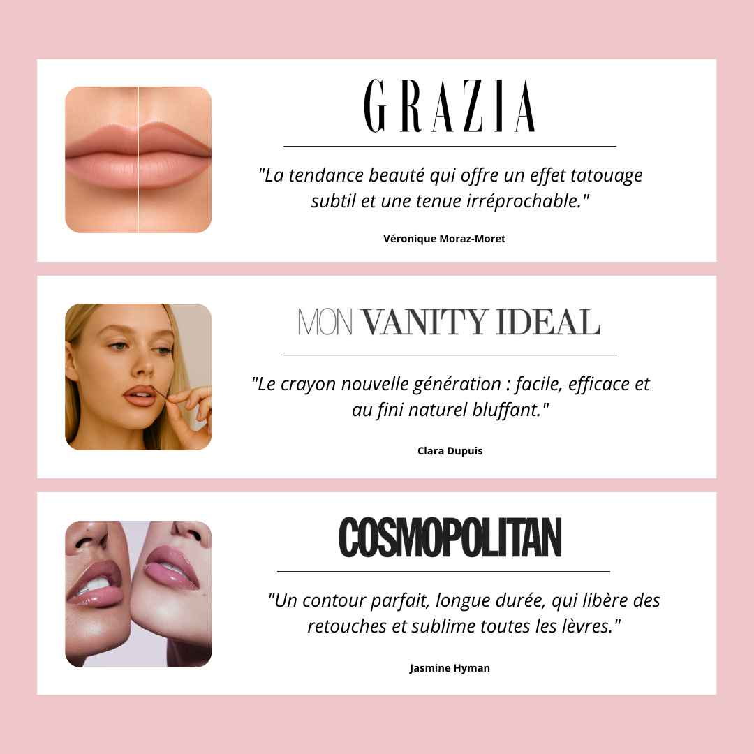 Avec Bouche Bée, redessinez vos lèvres en un seul geste et retrouvez un contour net, pulpeux et naturel.